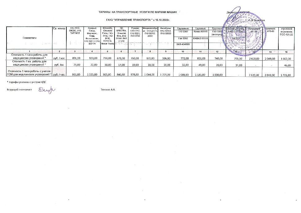 Тарифы на транспортные услуги - ГАУЗ «УПРАВЛЕНИЕ ТРАНСПОРТА»